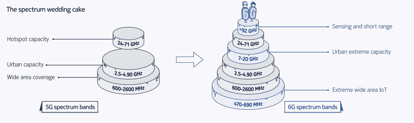 Per permettere tutto questo sarà necessario utilizzare ulteriori bande di frequenza rispetto al 5G e studiare tecnologie capaci di migliorare la copertura dei segnali e la gestione di molteplici dispositivi collegati alla stessa antenna che generano grandi flussi di dati.