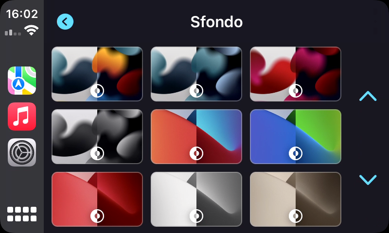 Per cambiare la grafica dello sfondo basta aprire l’app Impostazioni direttamente su CarPlay e scegliere quello preferito.