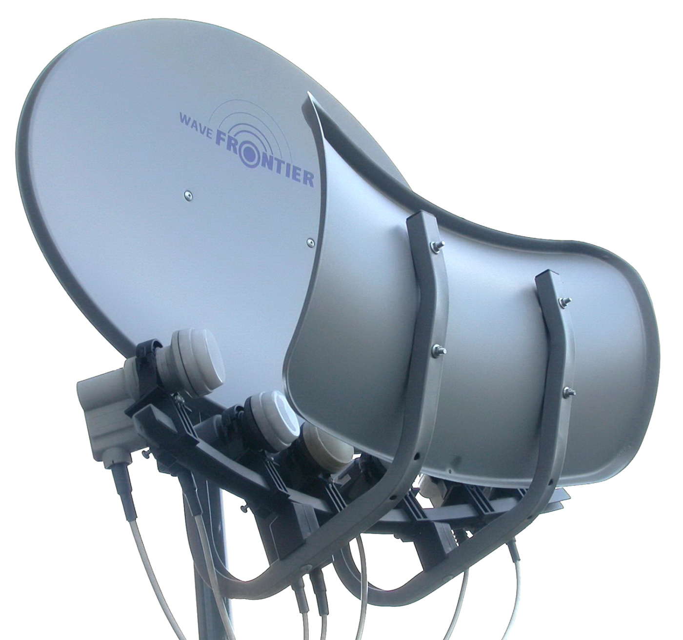 La parabola toroidale è stata studiata per ricevere fino a 16 satelliti che si trovano in una porzione della Fascia di Clarke di circa 40°, ad esempio da 35° Est a 5° Ovest. Il tutto senza bisogno di aggiungere un motore e senza gli inconvenienti (come la perdita di guadagno) che si manifestano con le tradizionali antenne ovali modificate per la ricezione Dual o Multi Feed. È costituita da due riflettori contrapposti conformati in modo tale da ottenere una “linea focale” (che segue la fascia di Clarke) al posto di un “punto focale” come avviene nelle tradizionali antenne ovali e piatte. Il riflettore principale, simile a quello delle classiche antenne ovali, guida i segnali dei diversi spot orbitali sul riflettore secondario concavo-convesso che a sua volta, grazie alla linea focale, li indirizza ai singoli LNB. Tra i modelli più gettonati segnaliamo la Wave Frontier T90: misura circa 97 x 109 cm e offre un guadagno leggermente inferiore rispetto ad una serie di parabole da 90 cm puntate sui singoli satelliti.