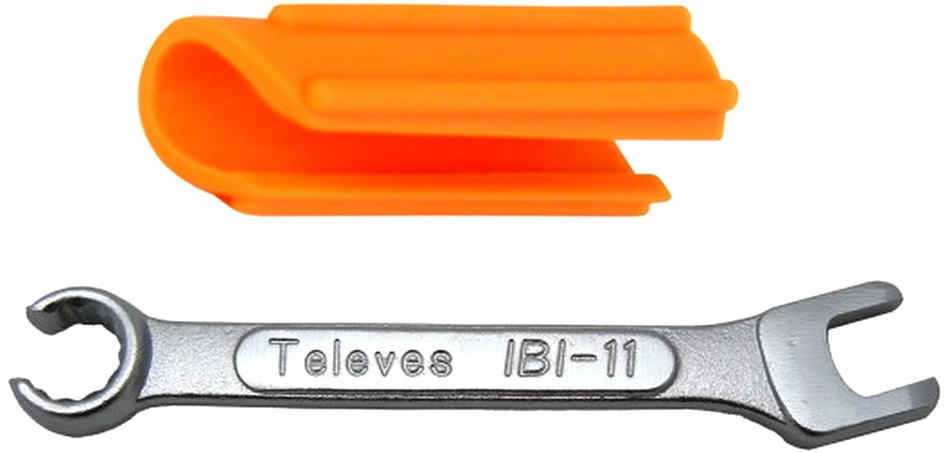 Per l’installazione e la manutenzione di antenne terrestri e parabole servono anche le chiavi a forchetta e anello (vedi sotto), la pinza crimpatrice (vedi sotto) e lo spelacavo (vedi sotto).