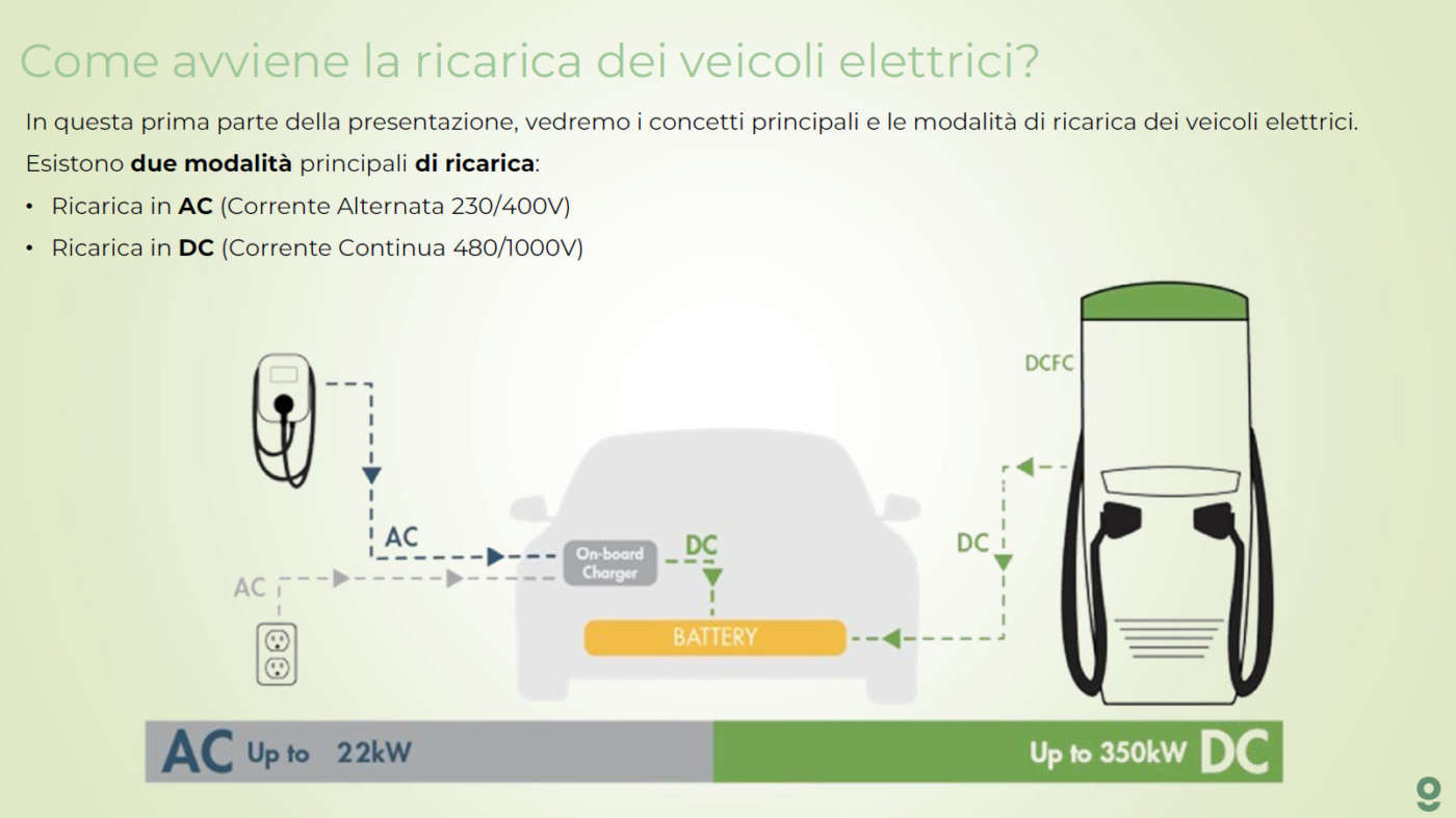 Le batterie dei veicoli elettrici supportano due diverse tipologie di ricarica: a corrente alternata (AC) e a corrente continua (DC).