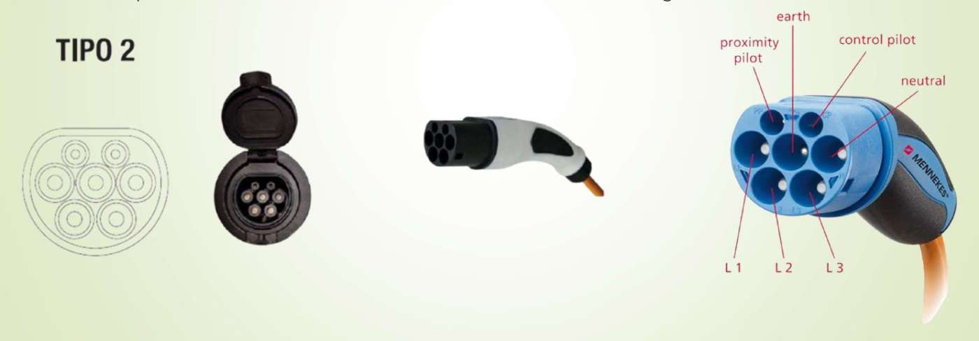 In base al tipo e alla modalità di ricarica (AC/DC) si utilizzano differenti spinotti e prese per trasferire l’energia elettrica dal punto di alimentazione (presa domestica, Wallbox, colonnina, ecc.) alla vettura.