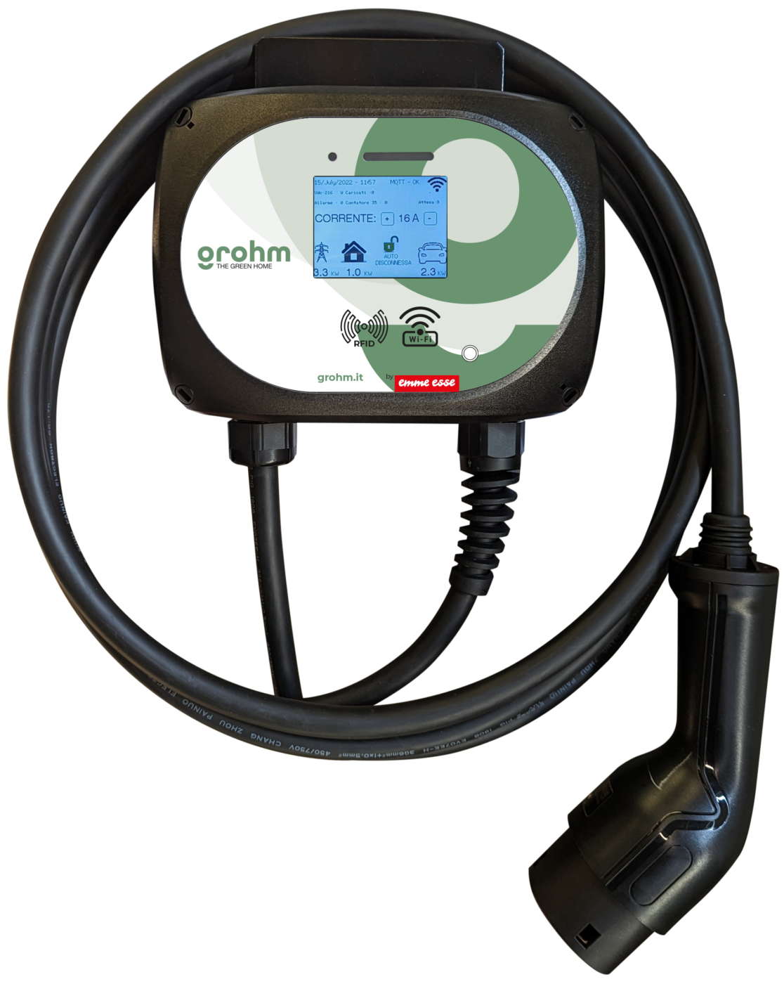 Si alimenta dalla rete elettrica domestica a corrente alternata di tipo monofase (220Vac) oppure trifase (380Vac) e funge da caricabatteria per i veicoli EV/PHEV regolando sia la tensione che l’afflusso di corrente per ottimizzare il processo di carica delle batterie così da farle durare più a lungo.