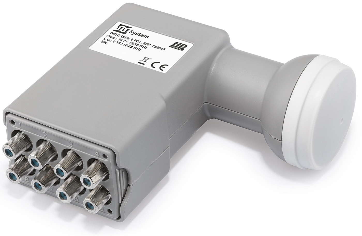 Gli LNB universali multipli possono arrivare a 4 uscite (LNB Quad) oppure a 8 uscite (LNB Octo) ma richiedono 4-8 cavi coassiali di discesa e 4-8 decoder/Tv.