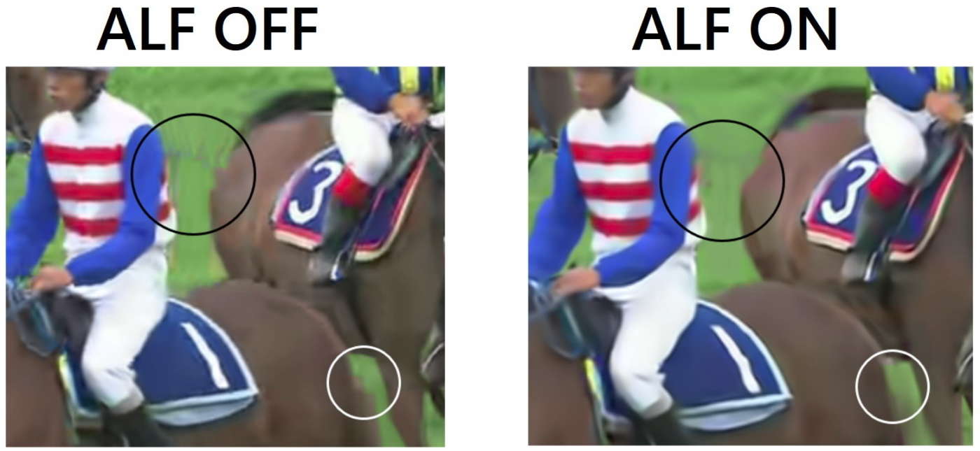 Il codificatore video calcola gli insiemi di coefficienti di filtro che porteranno all’errore più piccolo e li trasmette al decoder video. Il filtro ALF ha la capacità di ripulire gli artefatti nell’immagine e contribuisce anche a una sostanziale riduzione di bit rispetto a HEVC.