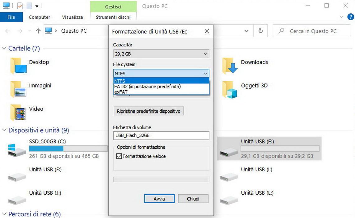 Come si formatta una chiavetta USB