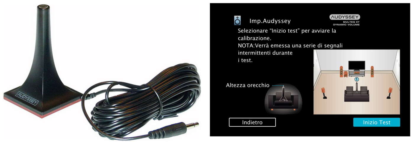 Altra dotazione interessante è il microfono ambientale che aiuta a configurare e parametrizzare in modo corretto i diffusori acustici (livello, ritardo, ecc.) a seconda del posizionamento, della distanza dal divano e dell’acustica della stanza. Basta collegare il microfono in dotazione al sintoampli, avviare la procedura di calibrazione e attendere qualche secondo. Più semplice di così…