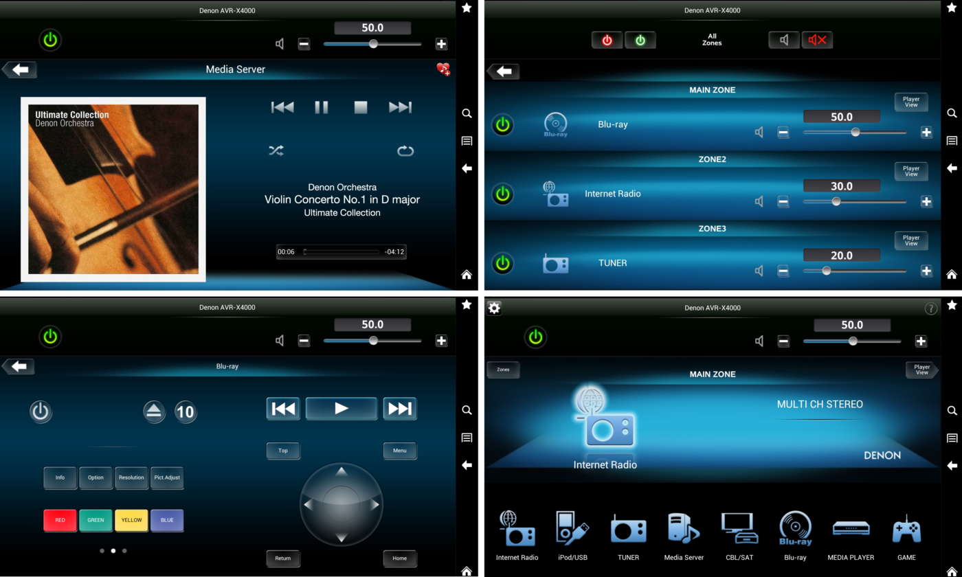Come gli visto per le soundbar e i sistemi Home Theater “all-in-one”, anche i sintoampli “multimediali” di ultima generazione si possono comandare con una app per tablet e smartphone (iOS e Android). Lo scopo è quello di controllare il sintoampli tramite lo schermo touch (in alternativa al telecomando originale) e configurare gran parte dei parametri dell’apparecchio senza passare dal menu OSD.