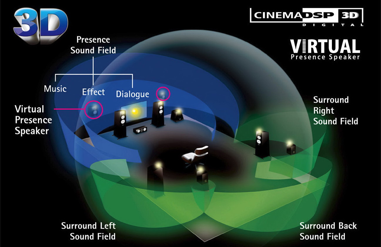 Solo i modelli di fascia media e alta di marchi prestigiosi includono un processore DSP “dedicato” (es.: Yamaha Cinema DSP 3D) con sofisticati programmi capaci di simulare l’acustica di cinema, sale da concerto, stadi e music club così da ottimizzare le performance audio e immergere lo spettatore al centro della scena.