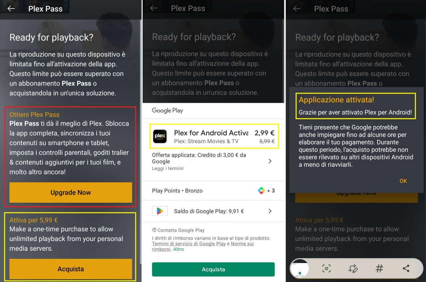 Purtroppo alcune app come quella per smartphone e tablet Android/iOS offrono solo un “assaggio” del contenuto audio/video (primi 60 secondi) mentre le foto sono “filigranate” (watermarked). Per proseguire con la visione o l’ascolto, per l’utilizzo con Android Auto e per eliminare la filigrana è necessario attivare la app pagando solo 5,99 euro (una-tantum).