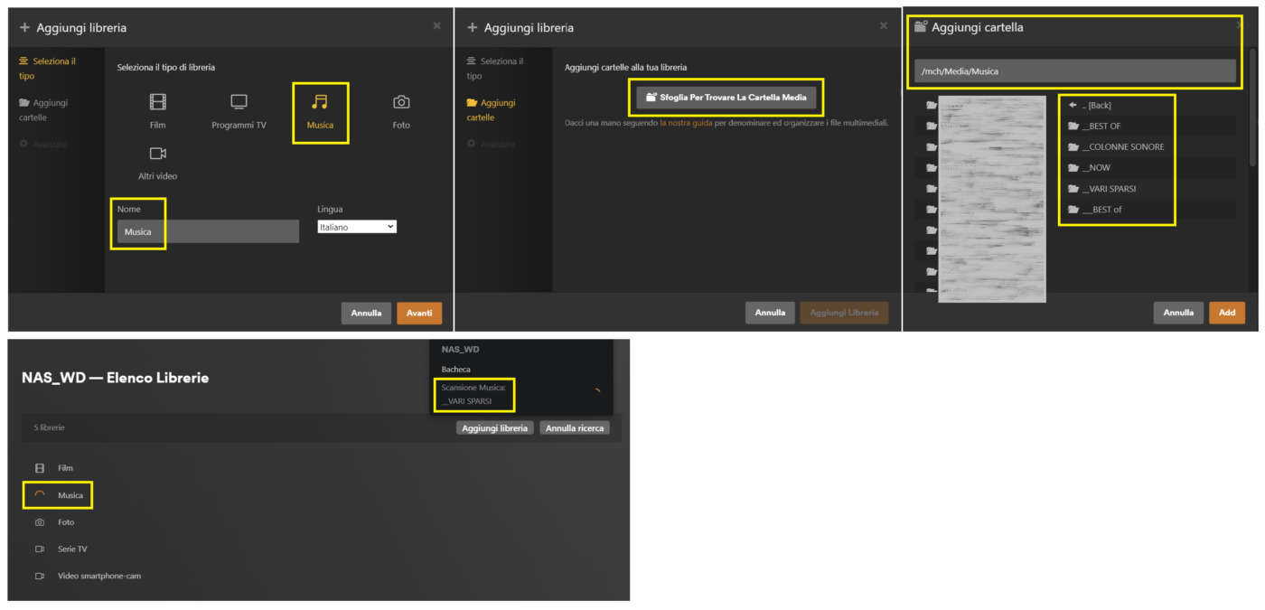Ripetete l’operazione per tutte le cartelle che volete condividere e attendete la procedura di scansione dei file multimediali (MP3, FLAC, JPG, BMP, AVI, MKV, ecc.).