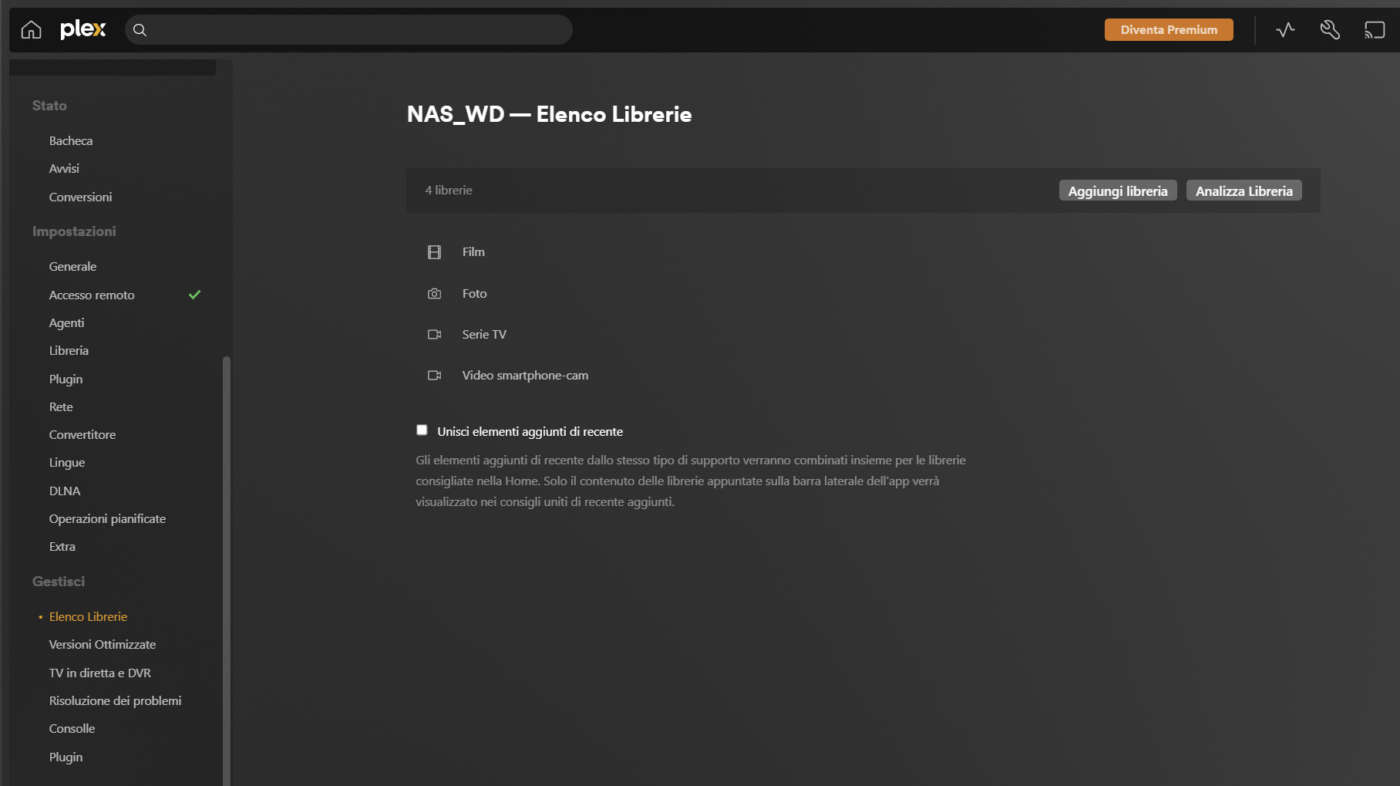 Dopo aver installato e attivato il server Plex potete configurarlo tramite lo stesso server o dal portale Plex.TV (Plex Web).