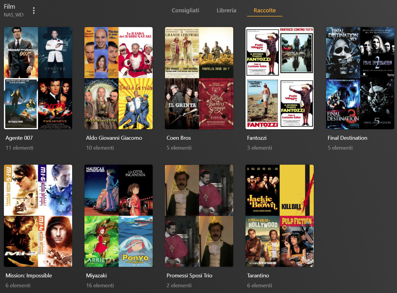 Potete anche creare una o più raccolte o playlist di film, video, foto e album musicali dove inserire i contenuti dello stesso regista o attore, tutti gli episodi di una saga (es.: Agente 007) o le fotografie sparpagliate in varie cartelle.