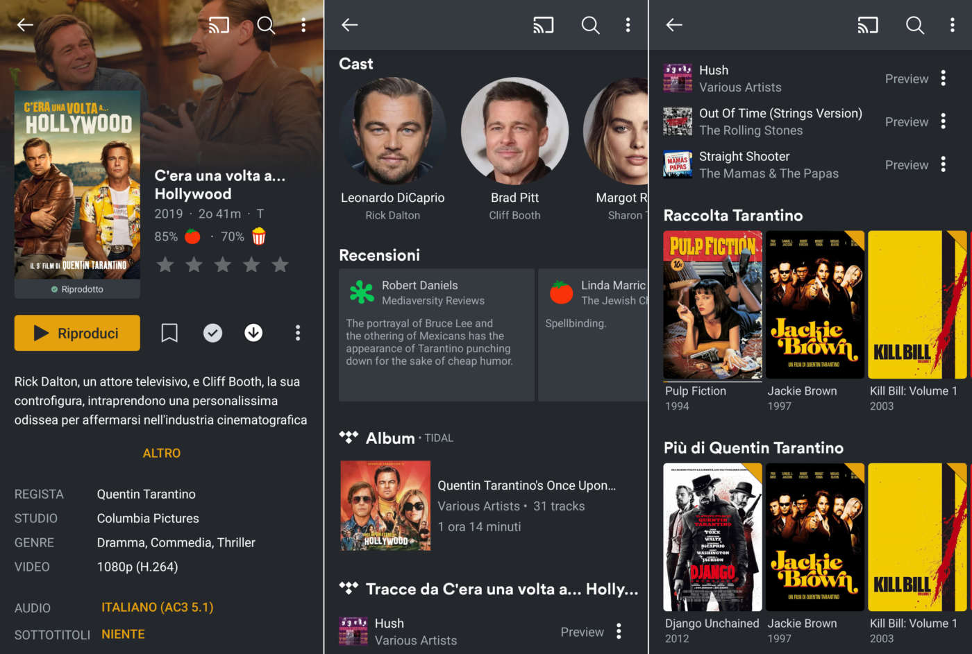 Le schede di film e brani musicali arricchiti dai metadati contengono alcune informazioni di base (es.: regista, attori, genere, data di uscita, lingua audio, trama, descrizione album, ecc.) e tanti extra interessanti come le recensioni di Rotten Tomatoes, i link alla colonna sonora e ai contenuti simili presenti sul server (es.: stesso regista o attori).