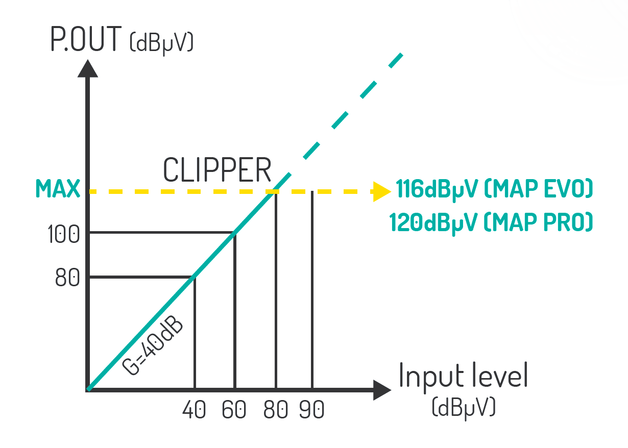 La gamma MAP EVO T2 comprende vari modelli da palo con uno o più ingressi dotati di amplificazioni separate (VHF/UHF), regolazioni del guadagno (es.: 0-15 dB) indipendenti per ogni banda e livello di uscita fino a 116dBμV.
