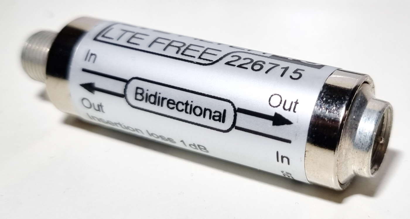 Ha una bassa perdita di inserzione (meno di 1,5 dB – da sottrarre al guadagno dell’antenna o del centralino) ed è dotato di doppio connettore F (maschio/femmina) con collegamento bidirezionale (in/out oppure out/in).
