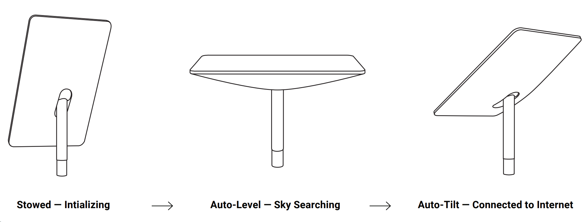 A differenza delle parabole satellitari per la ricezione radiotelevisiva, quelle di Starlink non richiedono assemblaggi e orientamenti manuali grazie al motore integrato con auto-puntamento GPS (versioni Standard e Alte Prestazioni) o al puntamento fisso (Flat High Performance).