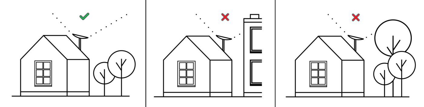 Prima di posizionare l’antenna è necessario controllare le condizioni del suolo su cui appoggerà il treppiede (giardino, terrazzo, cortile, ecc.), la distanza dal router Wi-Fi (il cavo di collegamento standard è lungo 23 metri) e, soprattutto, la visuale del cielo dal punto di installazione.