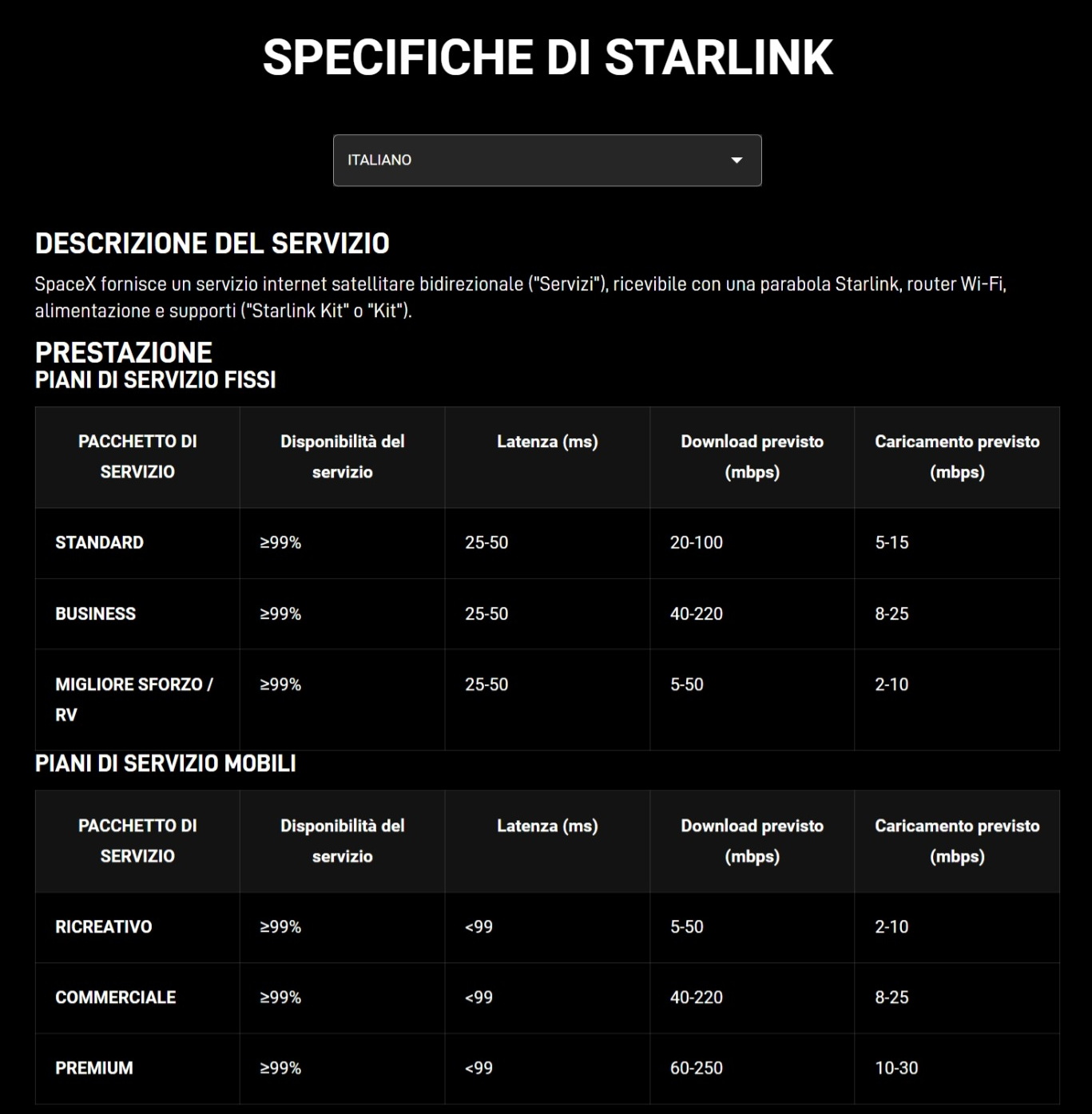 Per scoprire in dettaglio le condizioni commerciali di tutti i piani di abbonamento (prezzi, prestazioni garantite, limitazioni, ecc.) e ottenere le informazioni necessarie per un’eventuale comparazione (es.: Starlink vs FTTC) vi consigliamo di leggere la documentazione contrattuale come i termini di servizio, le prestazioni, il riepilogo di contratto, la trasparenza tariffaria e la politica di utilizzo corretto.