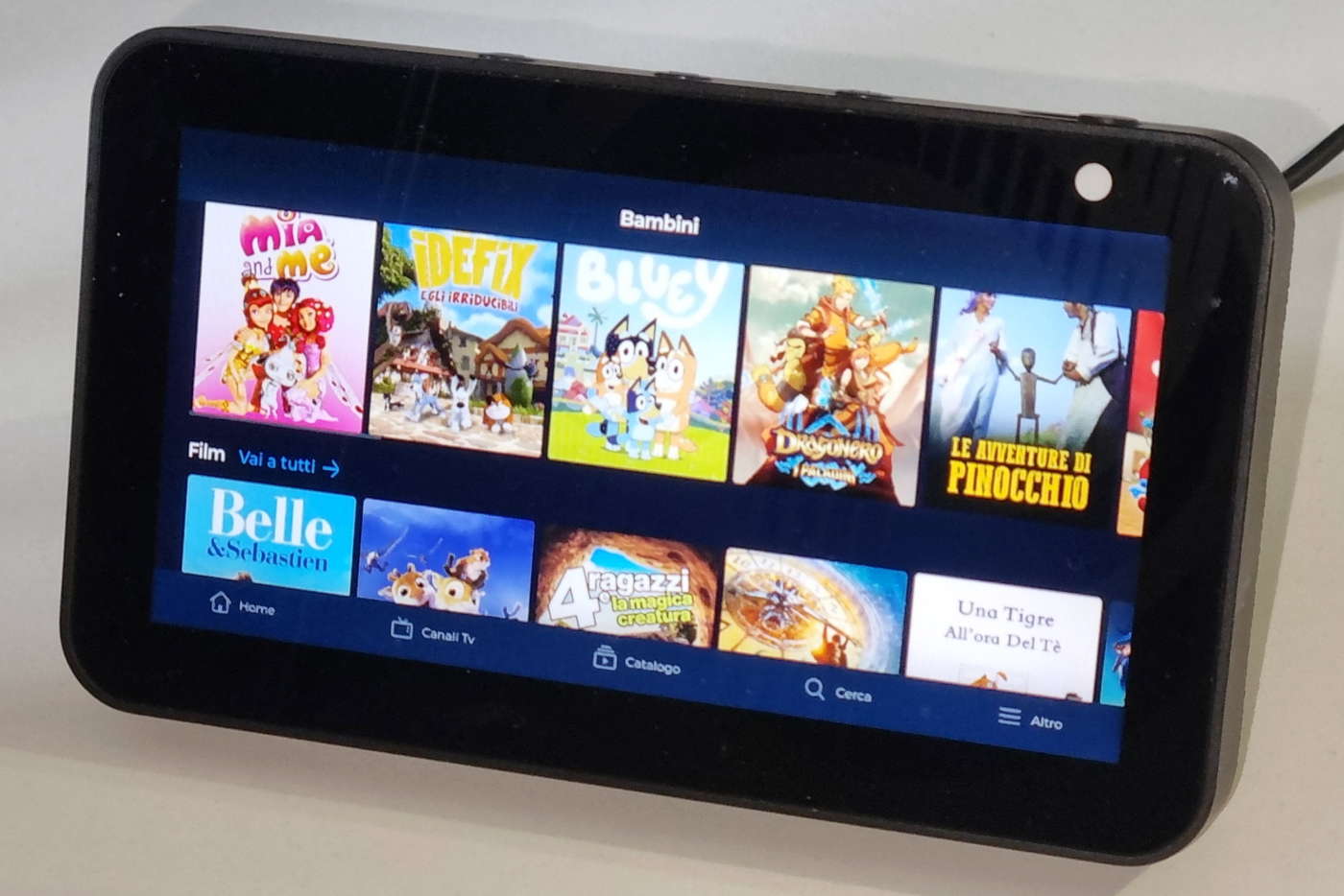 Il display touch da 5,5 pollici con risoluzione SD (960×480 pixel) e rapporto d’aspetto 18:9 è, secondo noi, troppo piccolo per vedere comodamente film, serie Tv e programmi televisivi su Prime Video, RaiPlay, ecc. È invece sufficiente per controllare la baby CAM della cameretta, le telecamere di sicurezza o il videocitofono smart, guardare l’ultima edizione del telegiornale, ecc.