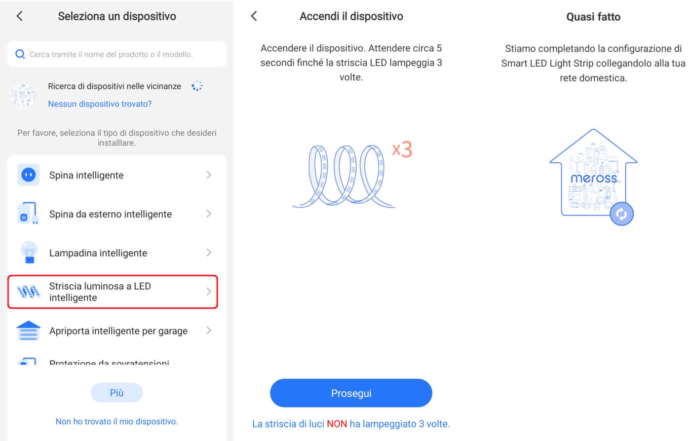 Se la striscia led smart richiede un controller esterno (es.: hub Zigbee), bisogna prima registrare il controller e poi associare la striscia led a quest’ultimo.