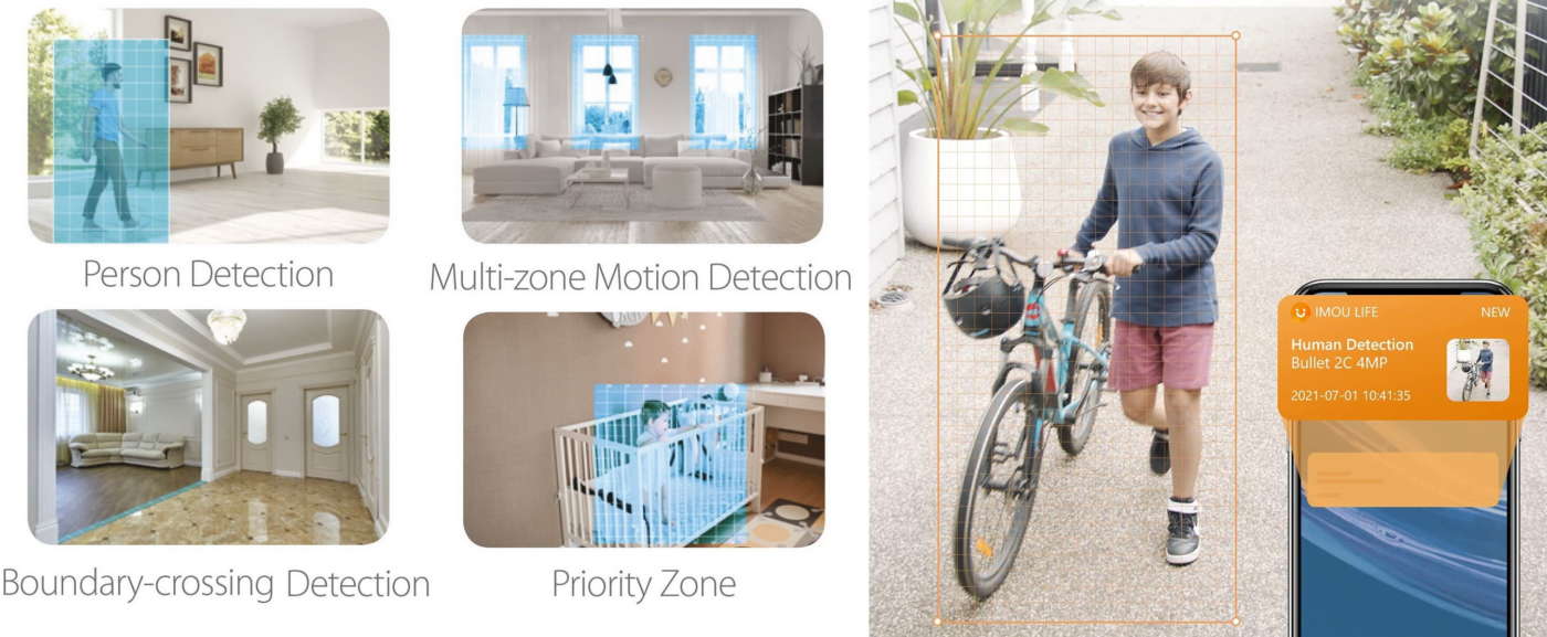 Per risolvere (parzialmente) questo problema esistono tecnologie video sofisticate, presenti di solito nelle telecamere IP di fascia media/alta che analizzano le riprese anche grazie all’aiuto dell’intelligenza artificiale: distinguono una figura umana da tutto il resto, inviano le notifiche solo se il movimento avviene in aree specifiche della stanza (es.: porte e finestre, lettino del bambino, ecc.) o se un intruso attraversa una linea virtuale tracciata sul display touch dello smartphone.