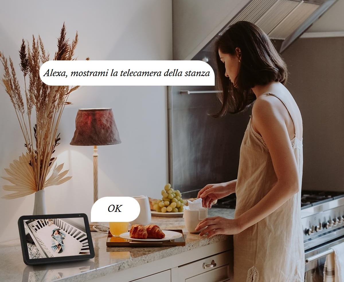 Se, ad esempio, possedete una Smart TV, un box Android, una Fire TV Stick, una chiavetta Chromecast con Google TV oppure uno smart display come gli Echo Show potete chiedere ad Alexa oppure a Google di vedere le riprese della telecamera e ascoltare i suoni ambientali (es.: “Alexa, fammi vedere la telecamera dei bambini”) direttamente sul televisore oppure sullo smart display senza bisogno di prendere in mano lo smartphone, aprire la app, ecc.