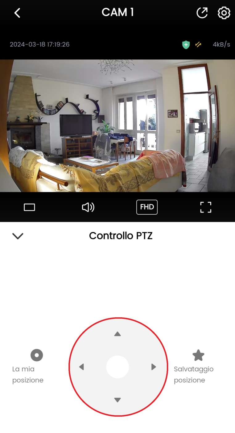 Grazie ad un doppio motore che fa girare l’intera telecamera (rotazione orizzontale fino a 360° – in gergo tecnico “Pan”) e/o l’obiettivo (escursione verticale di 100-120° circa – “Tilt”) è possibile cambiare a piacere l’inquadratura tramite lo smartphone, con i tasti virtuali sul display touch (destra, sinistra, alto, basso) o con un semplice swipe.