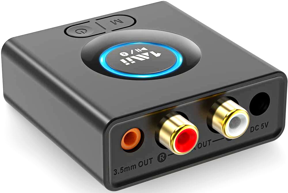 Ricevitore audio Bluetooth con conversione analogica (uscite RCA/Cinch e mini-jack) per ascoltare su impianti Hi-Fi, Home Cinema e speaker amplificati la musica in streaming riprodotta da smartphone, tablet, notebook, ecc.