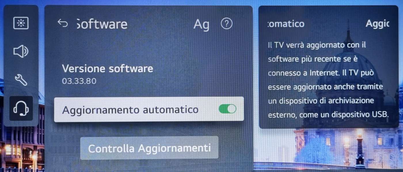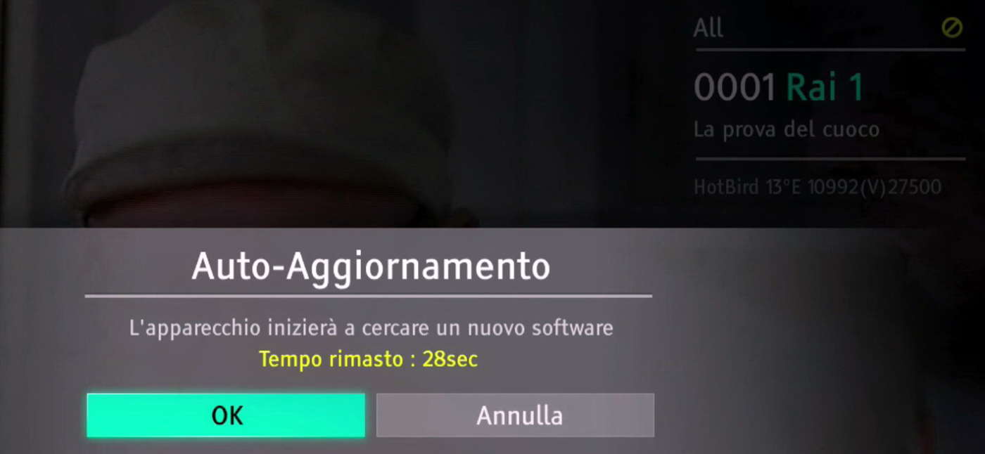 Smart TV e decoder connessi si aggiornano da soli quando è disponibile una nuova versione software (il controllo viene fatto ogni volta che si accende l’apparecchio) e la funzione di aggiornamento automatico è attiva.