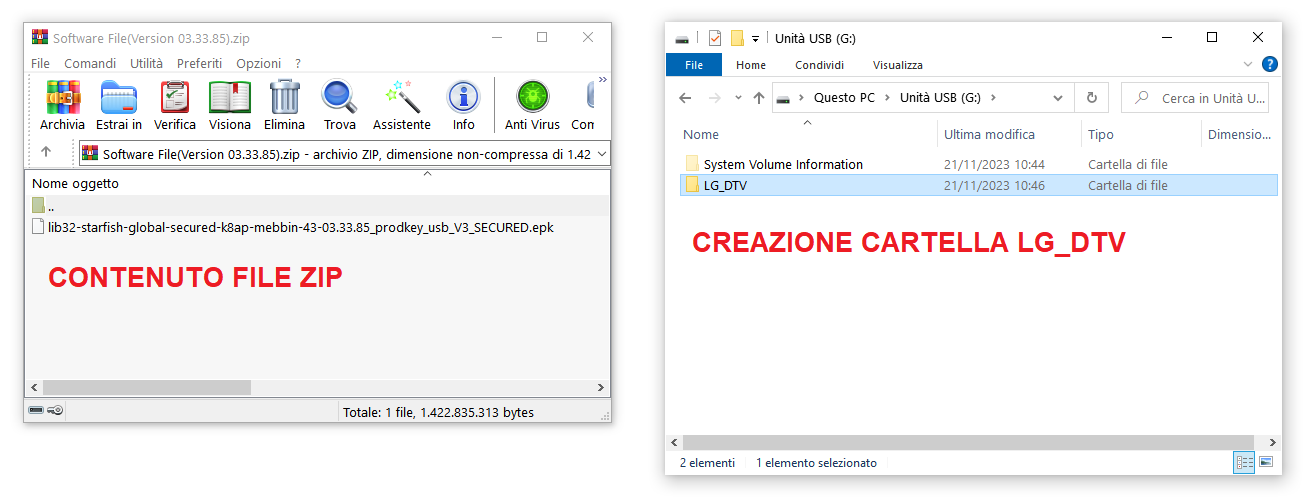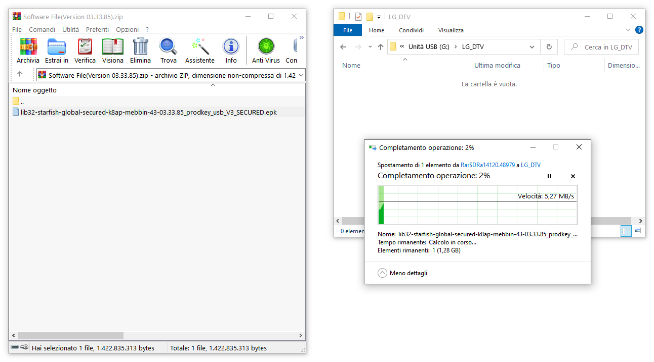 Terminato il download di entrambi i file scompattate quello del software sul PC (es.: sul desktop) e copiate il suo contenuto in una chiavetta USB da almeno 4-8 GB formattata in FAT32 o exFAT.