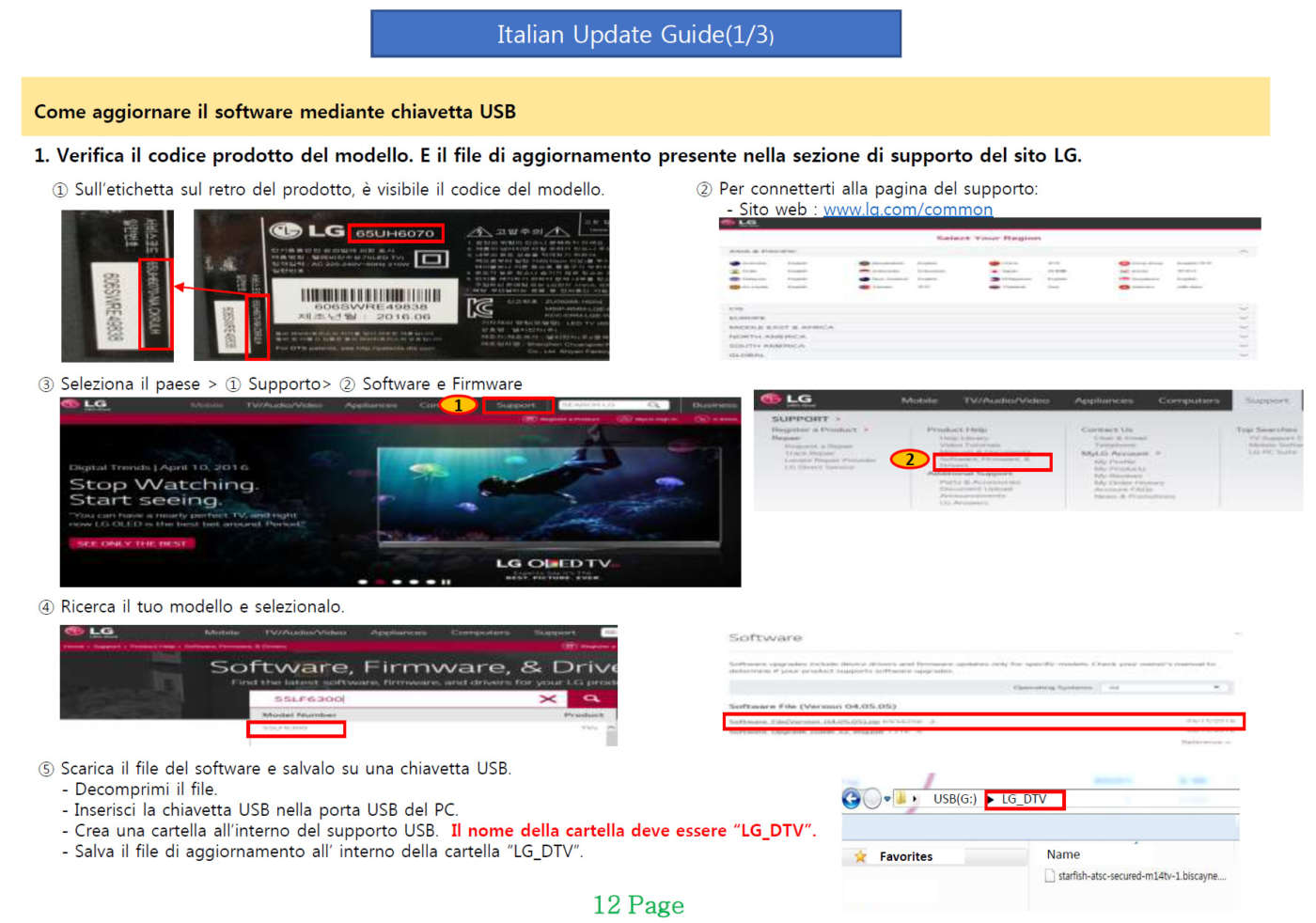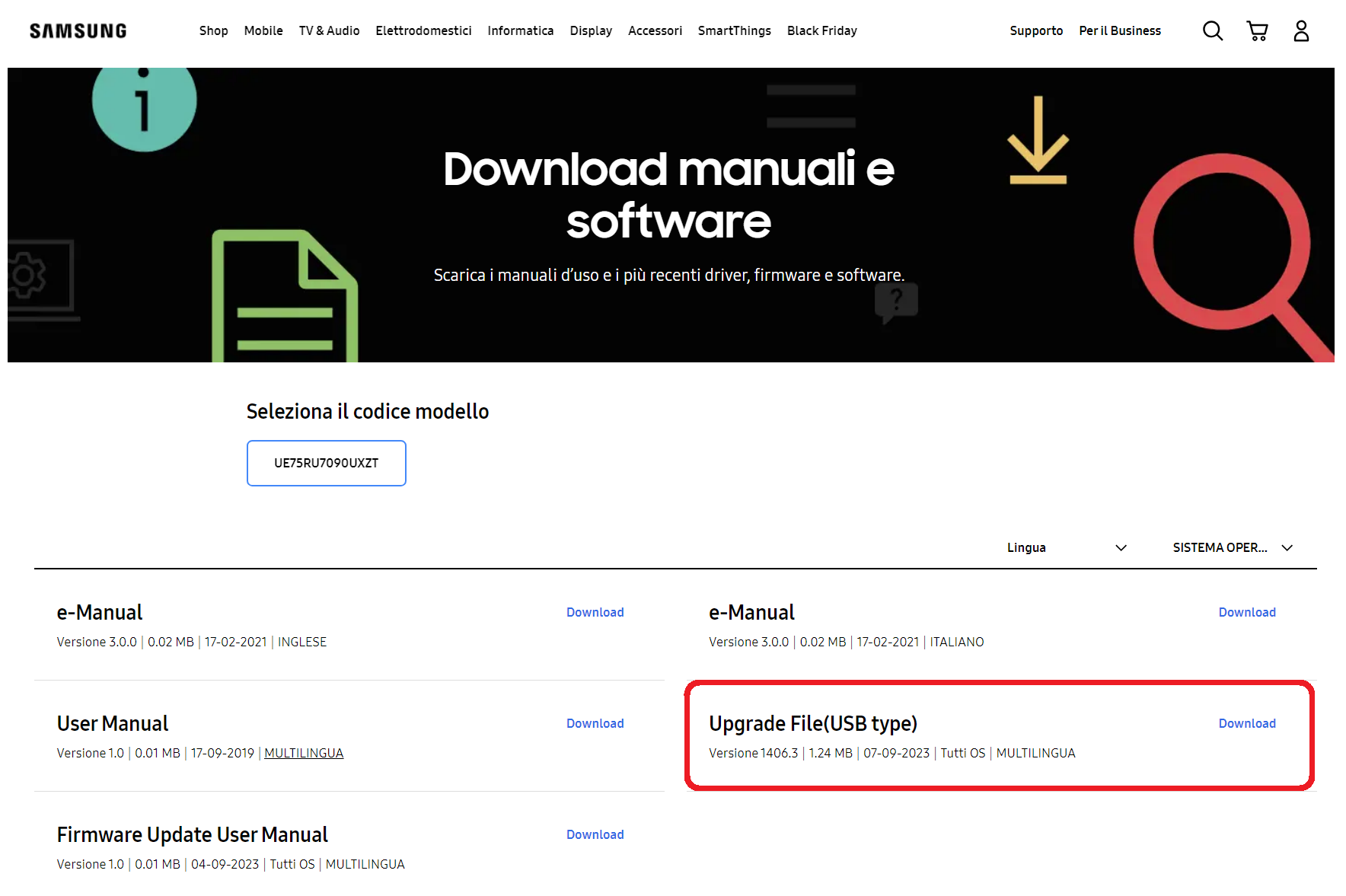 Se disponibile, scaricate anche la guida in PDF con le istruzioni di aggiornamento (es.: TV_Software_Update_Guide_v3 per i TV LG o Firmware Update User Manual per Samsung).