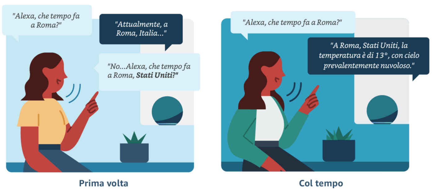 Per soddisfare questa esigenza, Amazon utilizza le richieste degli utenti fatte ad Alexa per allenare i sistemi di riconoscimento vocale e di comprensione del linguaggio naturale usando l’apprendimento automatico.