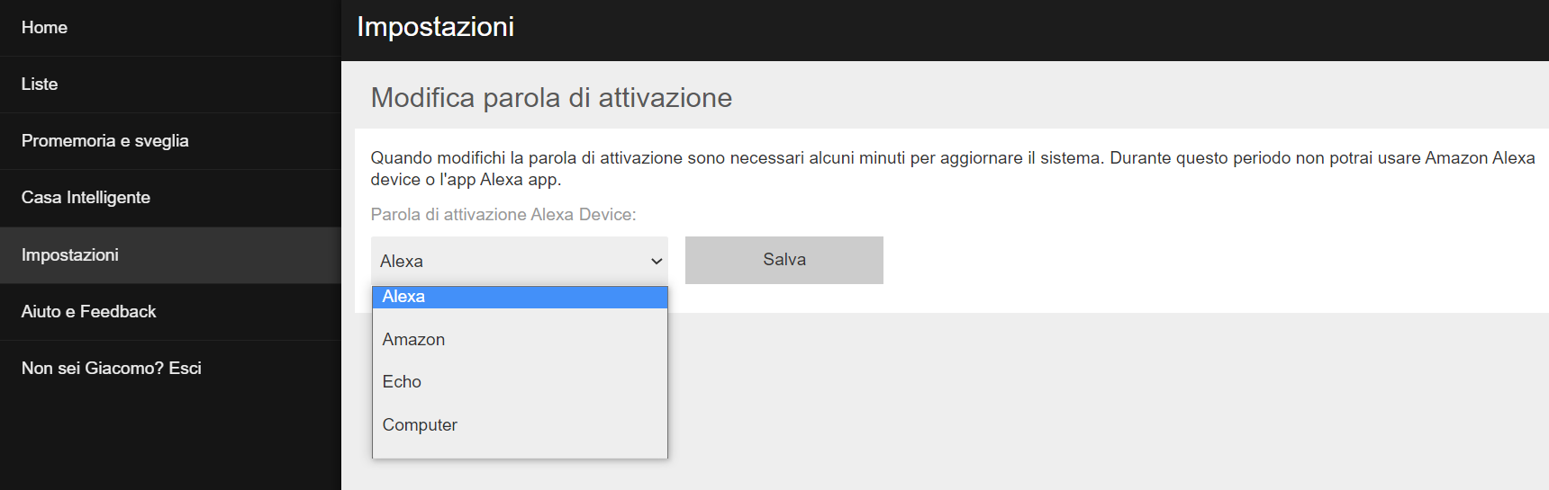 Purtroppo non è possibile personalizzare la parola chiave perché il chip interno e i server di Amazon dovrebbero imparare e riconoscere milioni di parole diverse utilizzate dagli utenti Echo in tutto il mondo.