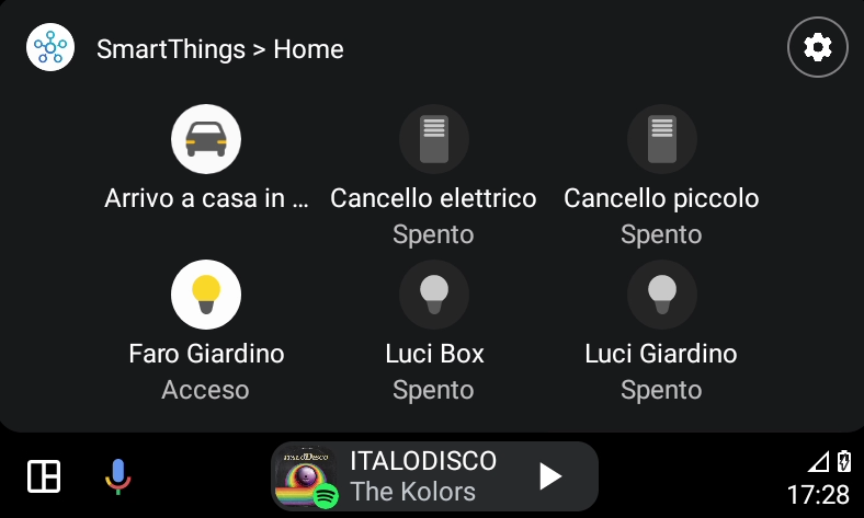 I dispositivi smart che supportano la piattaforma SmartThings di Samsung possono essere comandati direttamente dallo schermo touch dell’infotainment grazie all’omonima app replicata su Android Auto. Per conoscere meglio SmartThings e scoprire le sue applicazioni pratiche vi rimandiamo a questo articolo.