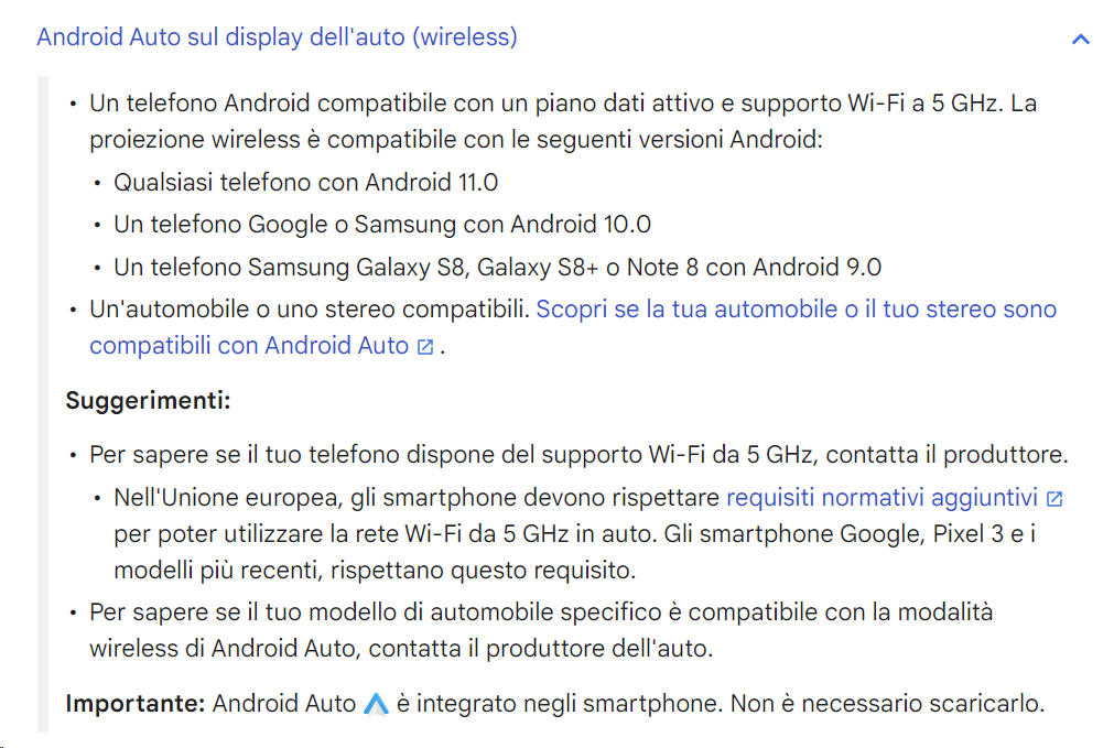 Il collegamento senza fili si può aggiungere anche alle autoradio che non lo supportano di fabbrica grazie agli adattatori Android Auto wireless-USB come questo, questo e questo. Per maggiori informazioni cliccate qui.