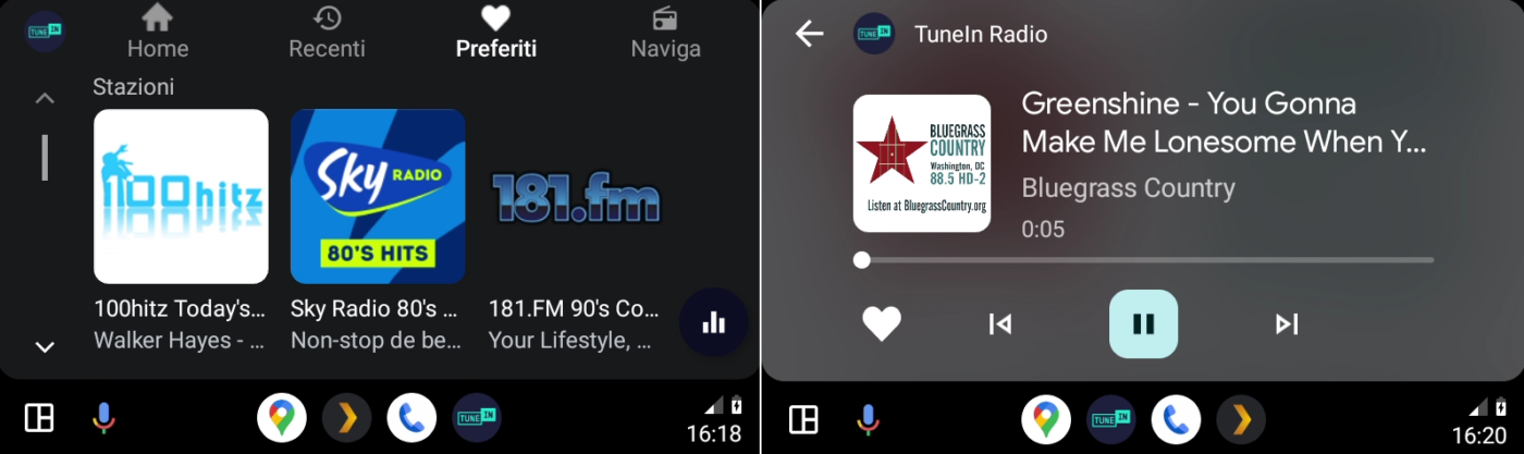 Android Auto supporta numerose app per l’ascolto delle stazioni radiofoniche in streaming, generaliste e tematiche, da tutto il mondo (Europa, USA, Africa, Asia, ecc.).