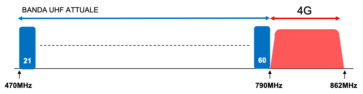 Già nel 2013, l’Europa aveva chiesto a tutti gli operatori televisivi di abbandonare un’altra fetta della banda UHF, quella che va da 790 a 862 MHz (canali 61-69 – Rilascio del Primo Dividendo Digitale) per fare spazio ai servizi mobili 4G/LTE.