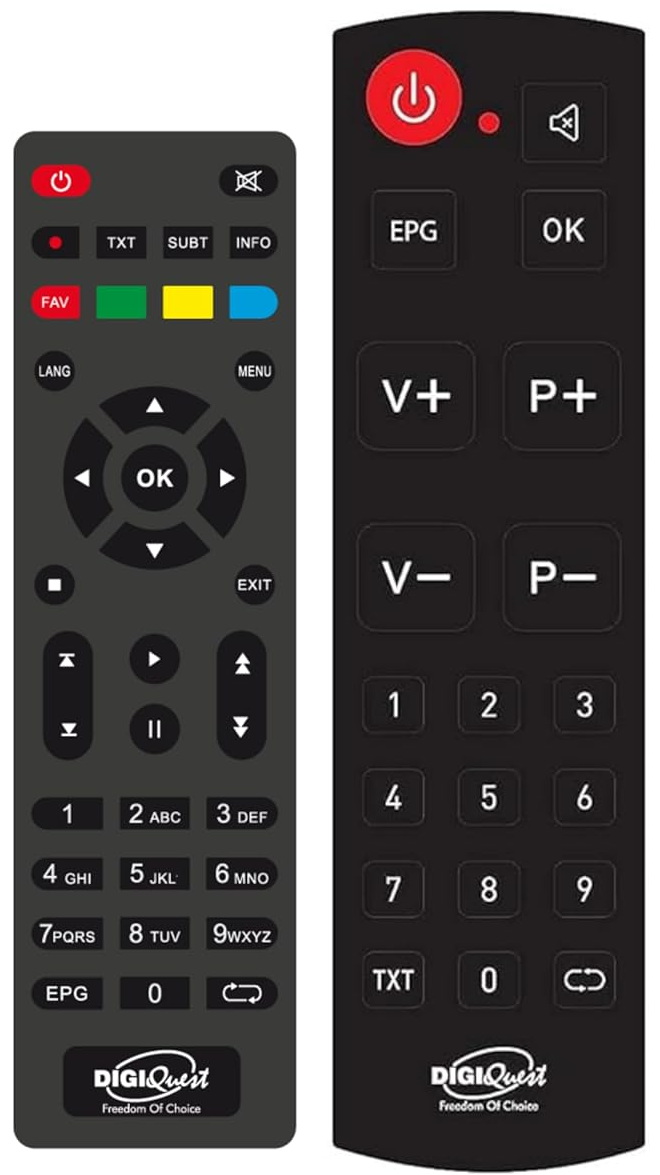Altri modelli ancora hanno in dotazione un telecomando semplificato, in alternativa o aggiunta a quello completo, caratterizzato da pochi tasti di grandi dimensioni. È la soluzione ideale per controllare più facilmente il decoder (ed anche il Tv se del tipo 2in1) da parte di bambini e anziani.