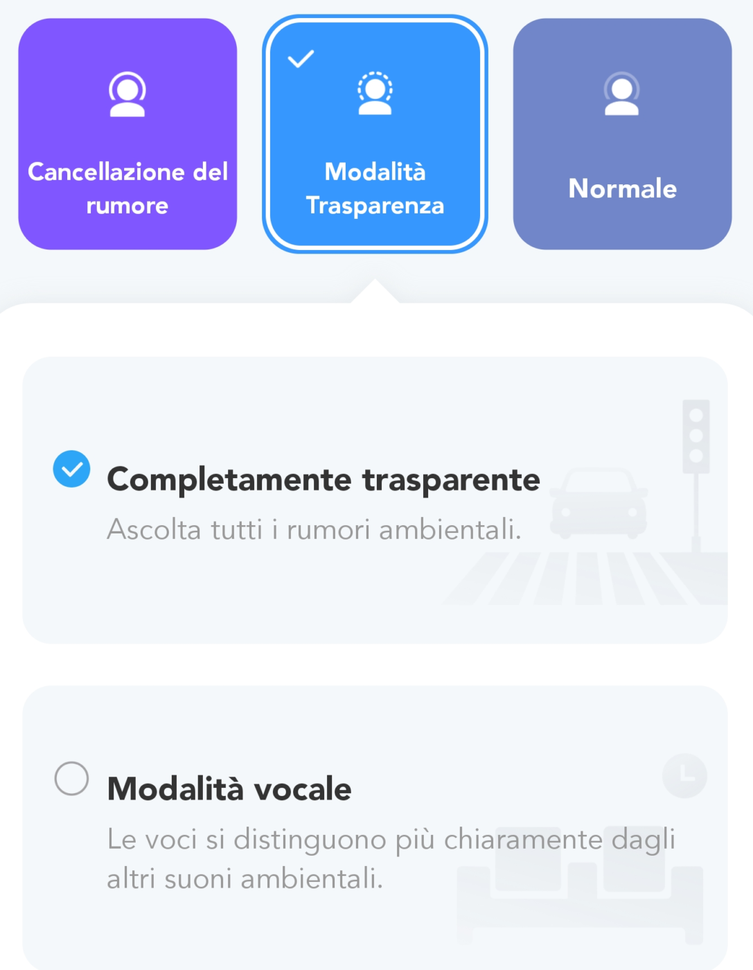 Si tratta di una funzione utile, soprattutto per la sicurezza, quando si indossano gli auricolari per strada, in casa o in altri contesti dove è pericoloso isolarsi completamente dal mondo esterno.