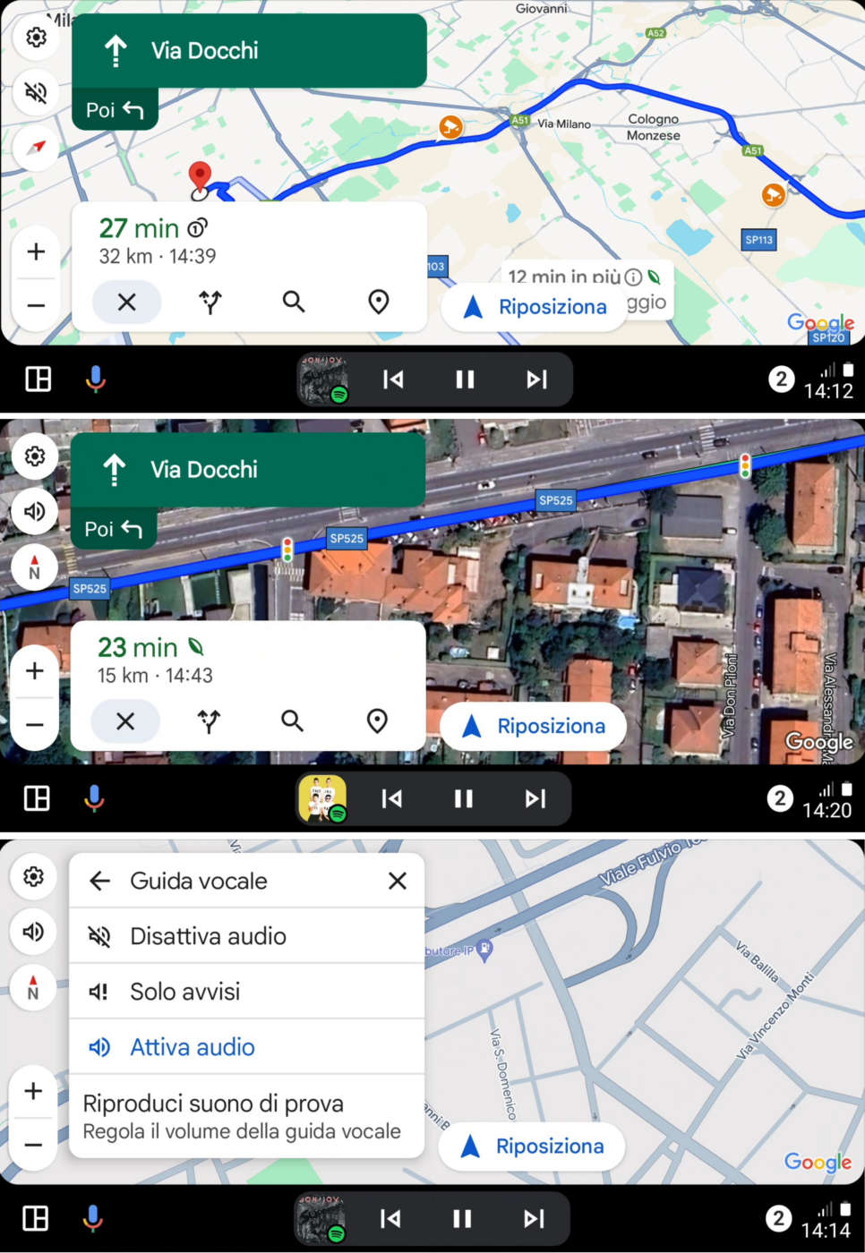 Google Maps è disponibile anche su Android Auto (per smartphone Android) e CarPlay (iPhone) in versione semplificata per evitare distrazioni alla guida ma sempre con gli avvisi ottici (icone) e vocali di presenza autovelox/photored lungo il percorso impostato.