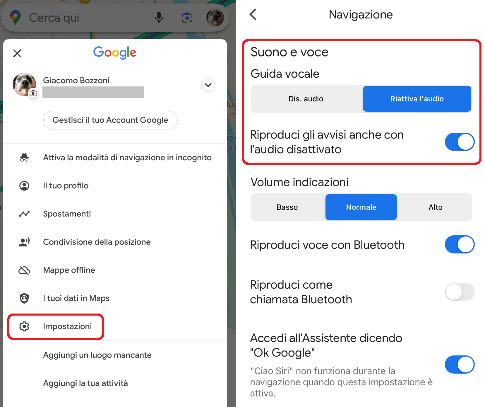 Per ascoltare anche gli avvisi vocali nelle vicinanze degli autovelox basta cliccare sul vostro avatar di Google (in alto a destra), selezionare Impostazioni, poi Navigazione e assicurarsi che le voci Guida vocale e/o Riproduci gli avvisi anche con l’audio disattivato siano attive.