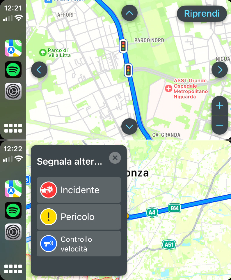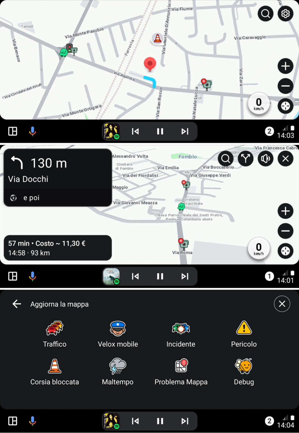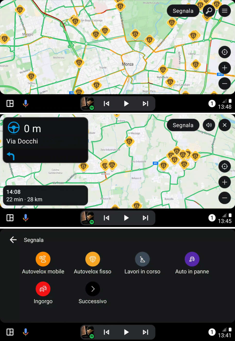 Anche Waze è compatibile con Android Auto e CarPlay con le stesse funzionalità di rilevamento autovelox-photored appena viste e la possibilità di ascoltare gli avvisi vocali in sottofondo anche durante l’uso di altre app (es.: Spotify, radio in streaming, meteo, ecc.).