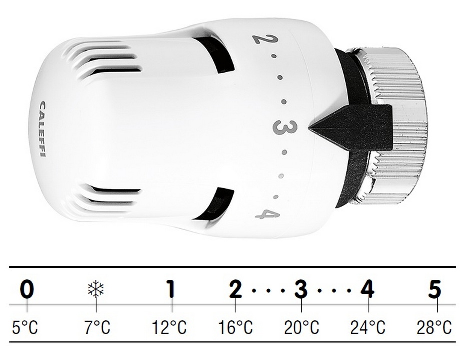 Valvola termostatica Caleffi con corrispondenza numeri/temperatura ambiente