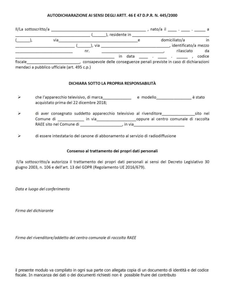 L’addetto alla raccolta dovrà firmare il modulo di autocertificazione, già compilato dal richiedente con i suoi dati personali, che verrà poi consegnato al venditore del nuovo Tv insieme a un documento d’identità e al codice fiscale per ottenere il Bonus.