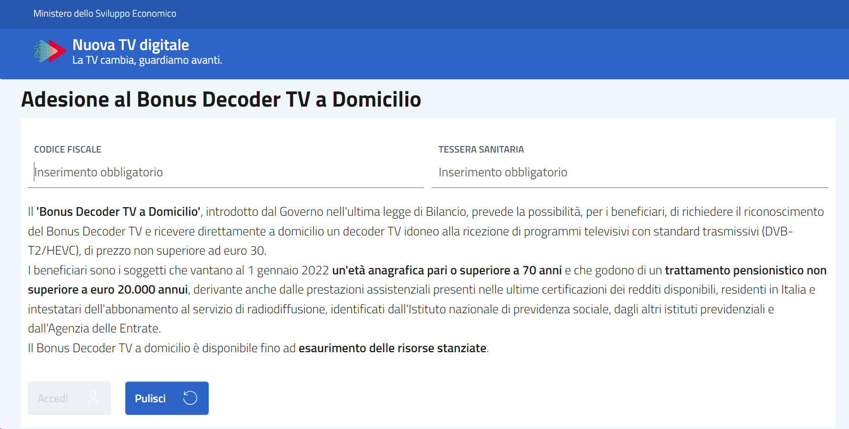 Il decoder può essere anche richiesto di persona recandosi in uno dei 12765 uffici postali in tutta Italia oppure da questo sito dedicato. Per la richiesta online basta digitare il codice fiscale, il numero della tessera sanitaria e inserire i dati personali richiesti per ottenere un appuntamento di consegna del decoder da parte del postino.