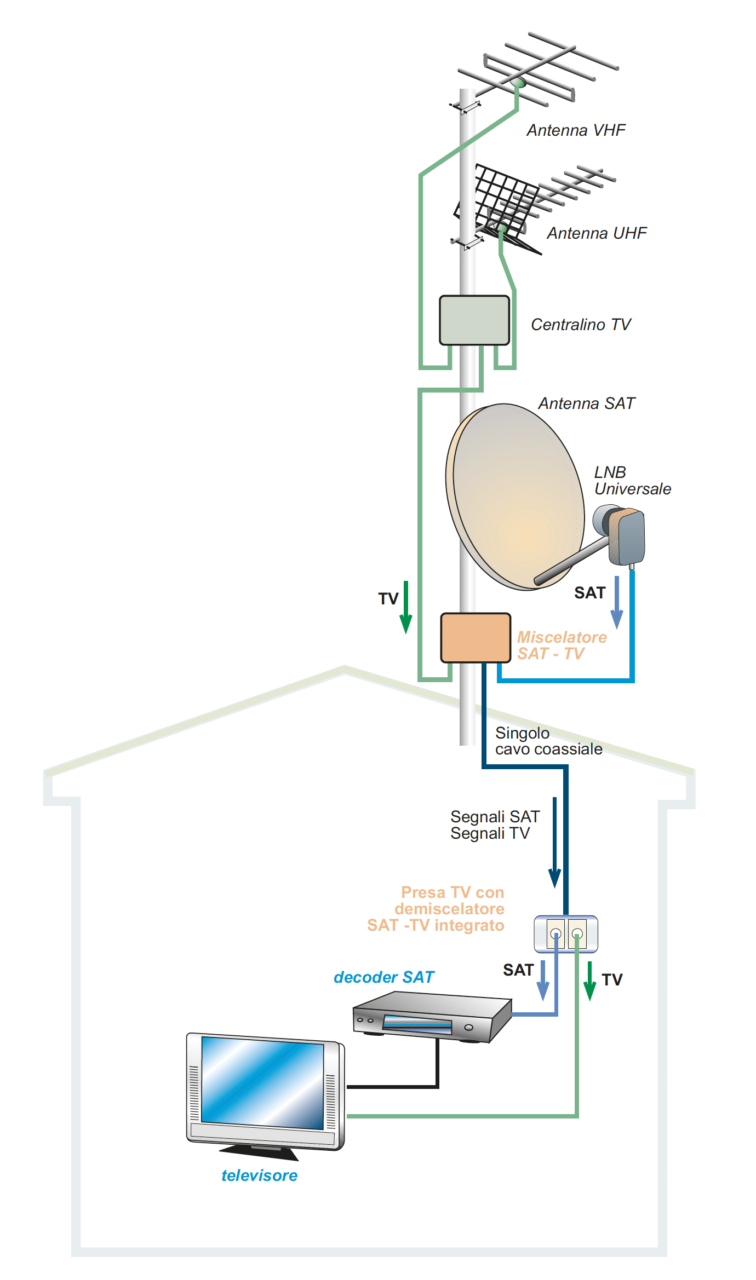 Posso mischiare i segnali SAT e DTT sullo stesso cavo coassiale?