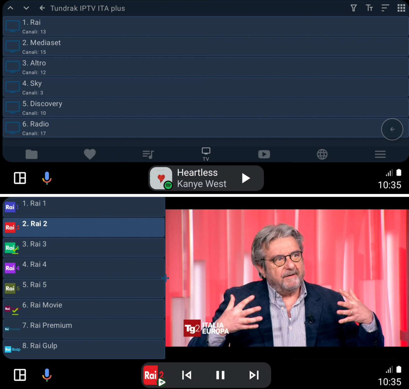 Alcuni canali come TV8 che non compaiono nelle playlist M3U e non sono disponibili su app Android si possono vedere tramite browser web, ad esempio quello di Fermata Auto (per Android Auto con app mod), Google Chrome (per AI Box), ecc.