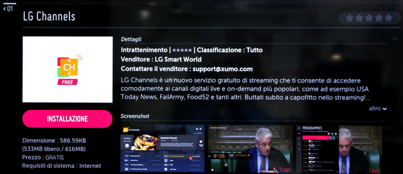 LG Channels è il servizio IPTV realizzato in collaborazione con Xumo e dedicato agli Smart TV dell’azienda coreana prodotti dal 2016 con sistema operativo webOS 3.0 e successivi (3.5, 4.0, 5.0, 6.0, ecc.). Il servizio non è disponibile su web e app iOS/Android/Windows.