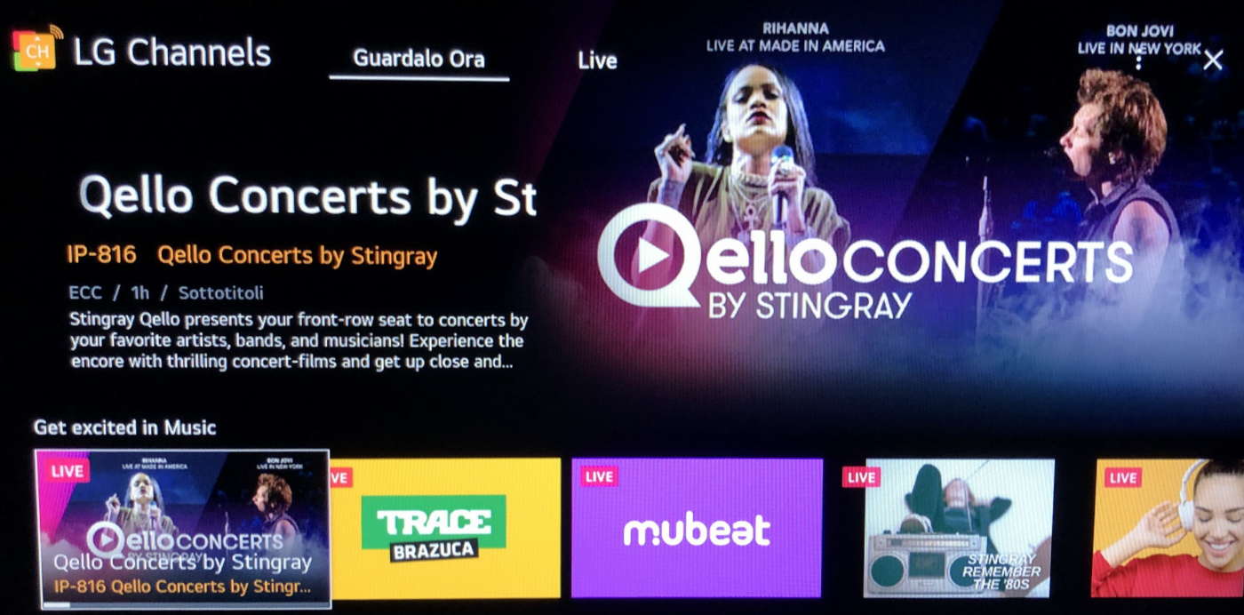 A seconda dello Smart TV utilizzato, della versione firmware e della versione webOS, alcuni canali potrebbero non essere disponibili. Inoltre, per la questione delle licenze e dei diritti Tv, LG Channels è disponibile solo nel paese in cui viene acquistata la TV.